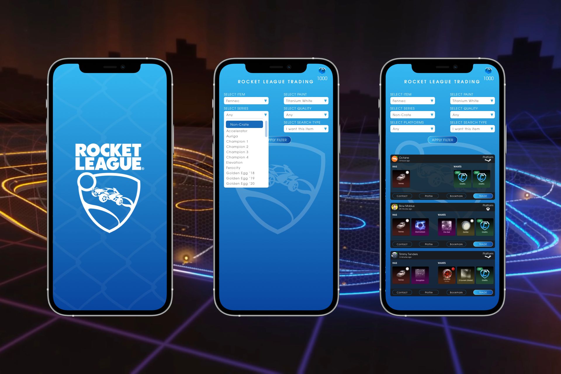 The item market in Rocket League is hotter than ever. Players love to flaunt stylish cars to flex on their opponents. This application would sync with your Steam, Xbox, or Playstation IDs to let you actively filter through other peoples offers and make trades.